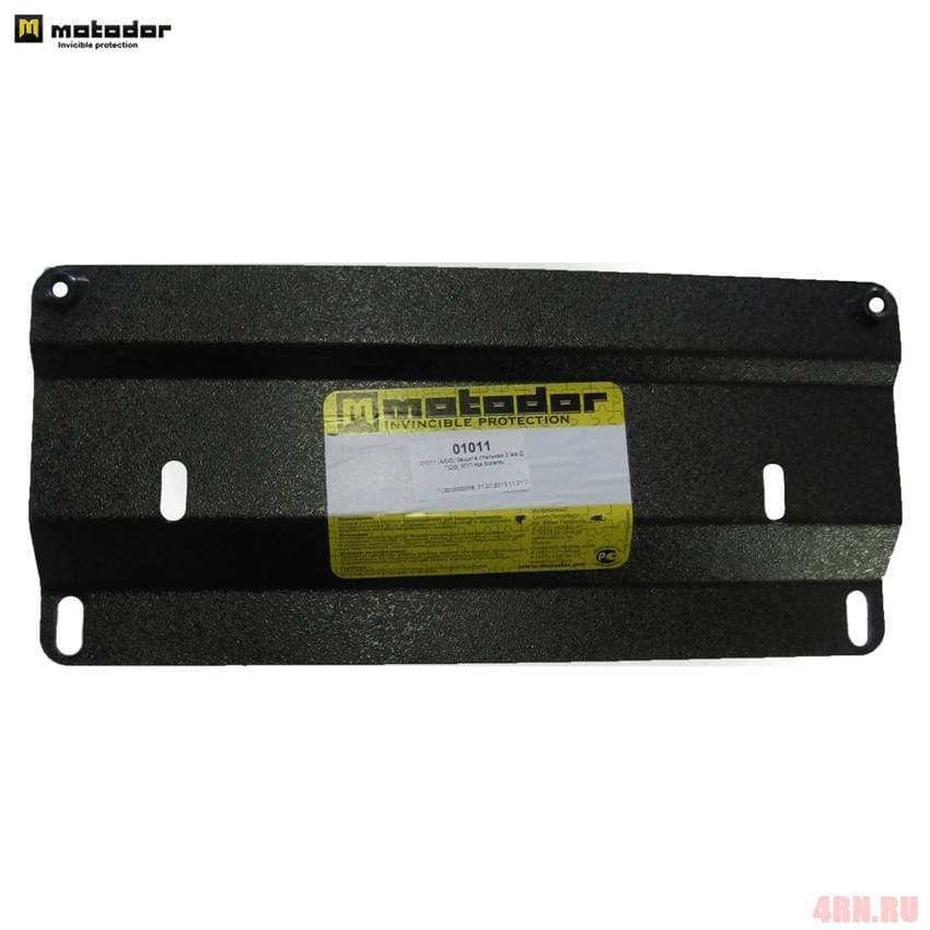 Защита двигателя и кпп, дифференциала артикул 01011 от российского производителя Мотодор. Разработана специально для автомобиля Kia Sorento 2002-2009. Крепеж поставляется в комплекте. Стали толщиной 2,0 мм достаточно для городских и загородных условий дорог.