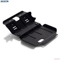 Порошковое окрашивание гарантирует долгий срок службы. А глубокий штамп увеличивает жесткость до 2,5 раз. Также имеется утопленный крепеж для предотвращения срывов. Качественная покраска защиты картера выдерживает 720 часов соляного тумана. Толщина изделия составляет 2-6 мм. Подштамповка в местах крепления предохраняет крепеж от срезания. Деталь спроектирована индивидуально для вашего автомобиля, что позволяет устанавливать ее в штатные места без доработки кузова за 10 мин.