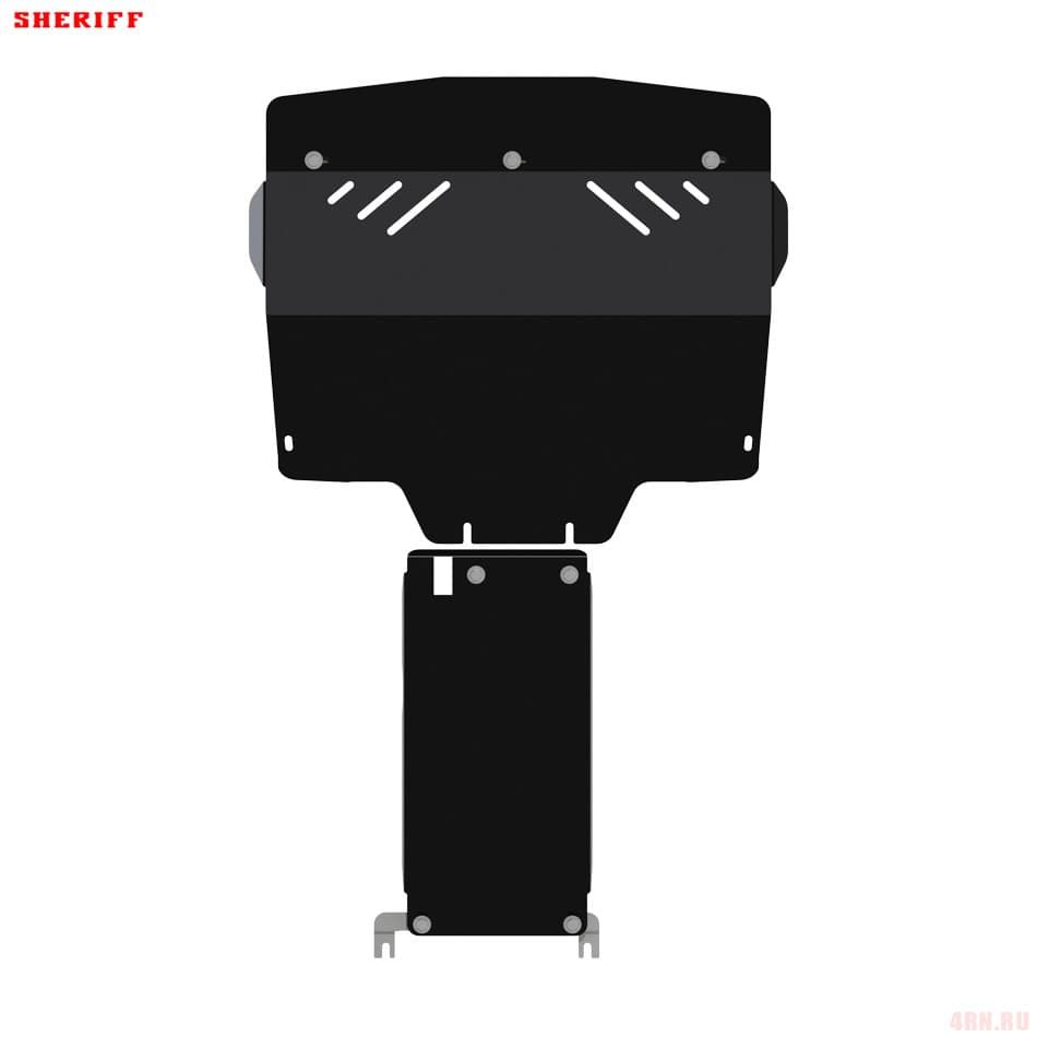 Защита картера Sheriff нужна для сохранности узлов и агрегатов, находящихся на днище авто. Она надежно защитит двигательный отсек вашей машины от повреждений. Также она защищает моторный отсек от влаги, грязи, и предусматривает наличие металлических крыльев, которые выполняют функцию пыльника.