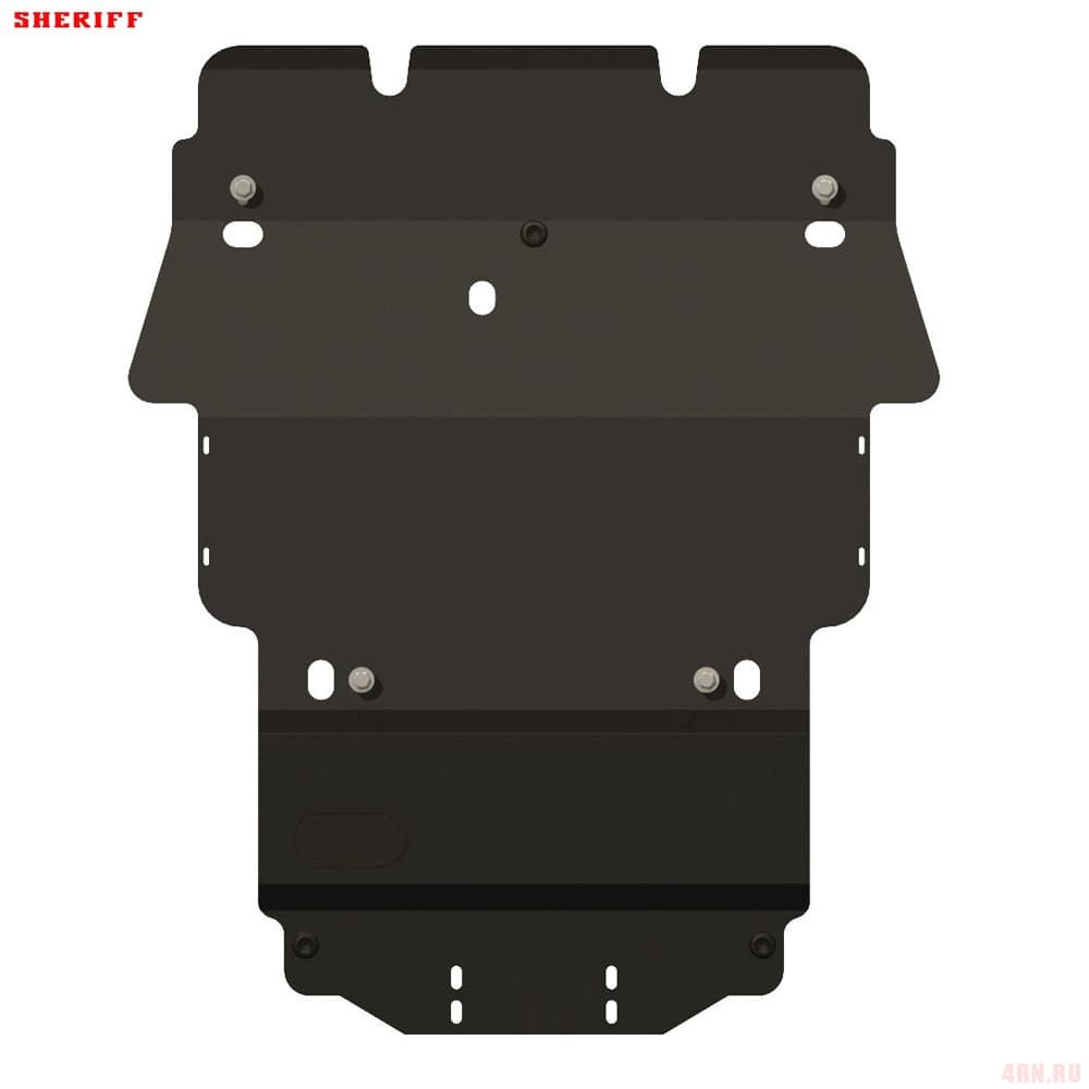 Защита картера Sheriff нужна для сохранности узлов и агрегатов, находящихся на днище авто. Она надежно защитит двигательный отсек вашей машины от повреждений. Также она защищает моторный отсек от влаги, грязи, и предусматривает наличие металлических крыльев, которые выполняют функцию пыльника.
