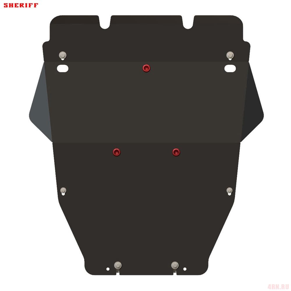 Защита картера Sheriff нужна для сохранности узлов и агрегатов, находящихся на днище авто. Она надежно защитит двигательный отсек вашей машины от повреждений. Также она защищает моторный отсек от влаги, грязи, и предусматривает наличие металлических крыльев, которые выполняют функцию пыльника.