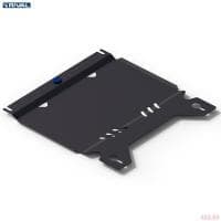 Порошковое окрашивание гарантирует долгий срок службы. А глубокий штамп увеличивает жесткость до 2,5 раз. Также имеется утопленный крепеж для предотвращения срывов. Качественная покраска защиты картера выдерживает 720 часов соляного тумана. Толщина изделия составляет 2-6 мм. Подштамповка в местах крепления предохраняет крепеж от срезания. Деталь спроектирована индивидуально для вашего автомобиля, что позволяет устанавливать ее в штатные места без доработки кузова за 10 мин.