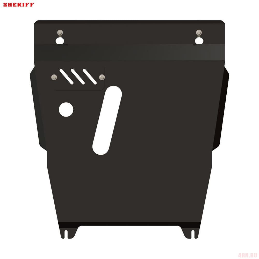 Защита картера Sheriff нужна для сохранности узлов и агрегатов, находящихся на днище авто. Она надежно защитит двигательный отсек вашей машины от повреждений. Также она защищает моторный отсек от влаги, грязи, и предусматривает наличие металлических крыльев, которые выполняют функцию пыльника.