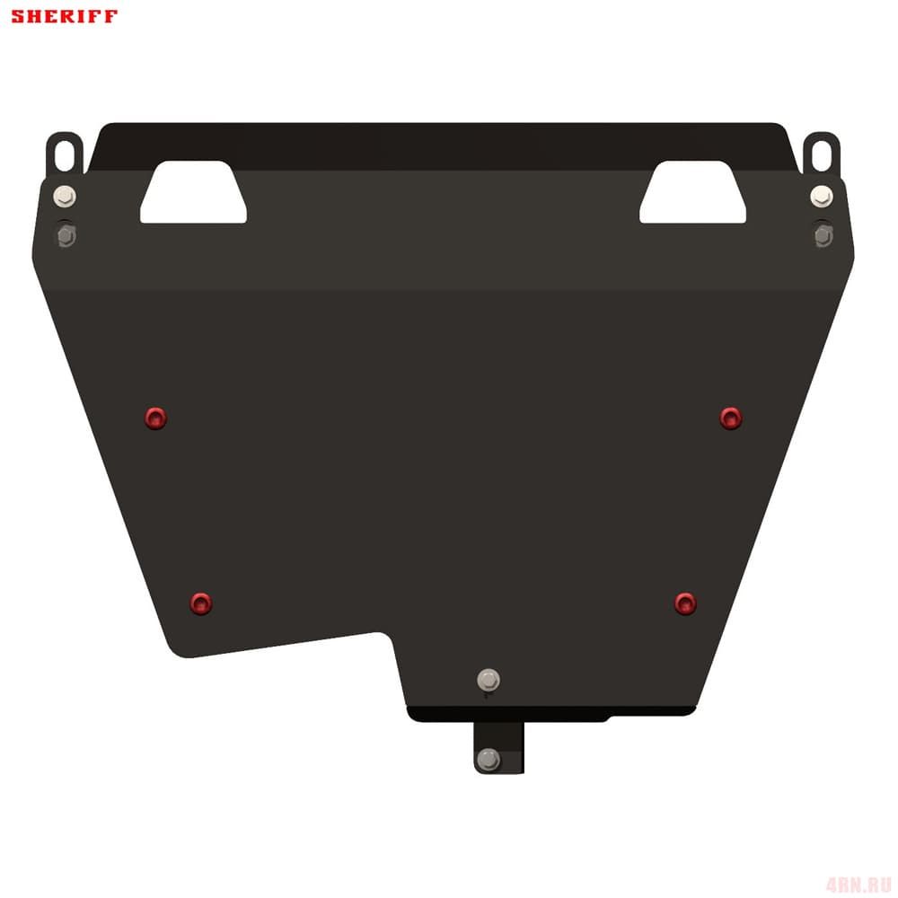 Защита картера Sheriff нужна для сохранности узлов и агрегатов, находящихся на днище авто. Она надежно защитит двигательный отсек вашей машины от повреждений. Также она защищает моторный отсек от влаги, грязи, и предусматривает наличие металлических крыльев, которые выполняют функцию пыльника.
