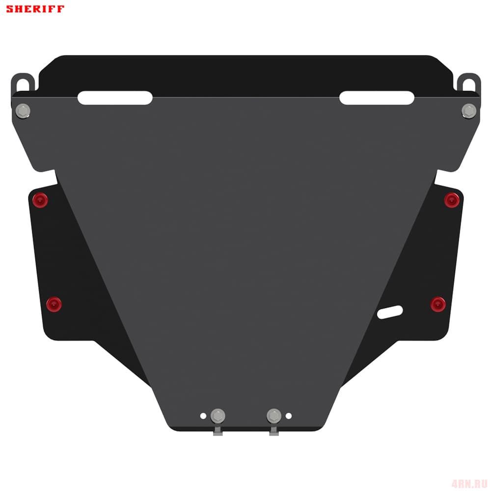 Защита картера Sheriff нужна для сохранности узлов и агрегатов, находящихся на днище авто. Она надежно защитит двигательный отсек вашей машины от повреждений. Также она защищает моторный отсек от влаги, грязи, и предусматривает наличие металлических крыльев, которые выполняют функцию пыльника.