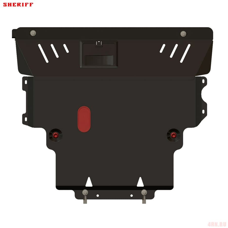 Защита картера Sheriff нужна для сохранности узлов и агрегатов, находящихся на днище авто. Она надежно защитит двигательный отсек вашей машины от повреждений. Также она защищает моторный отсек от влаги, грязи, и предусматривает наличие металлических крыльев, которые выполняют функцию пыльника.