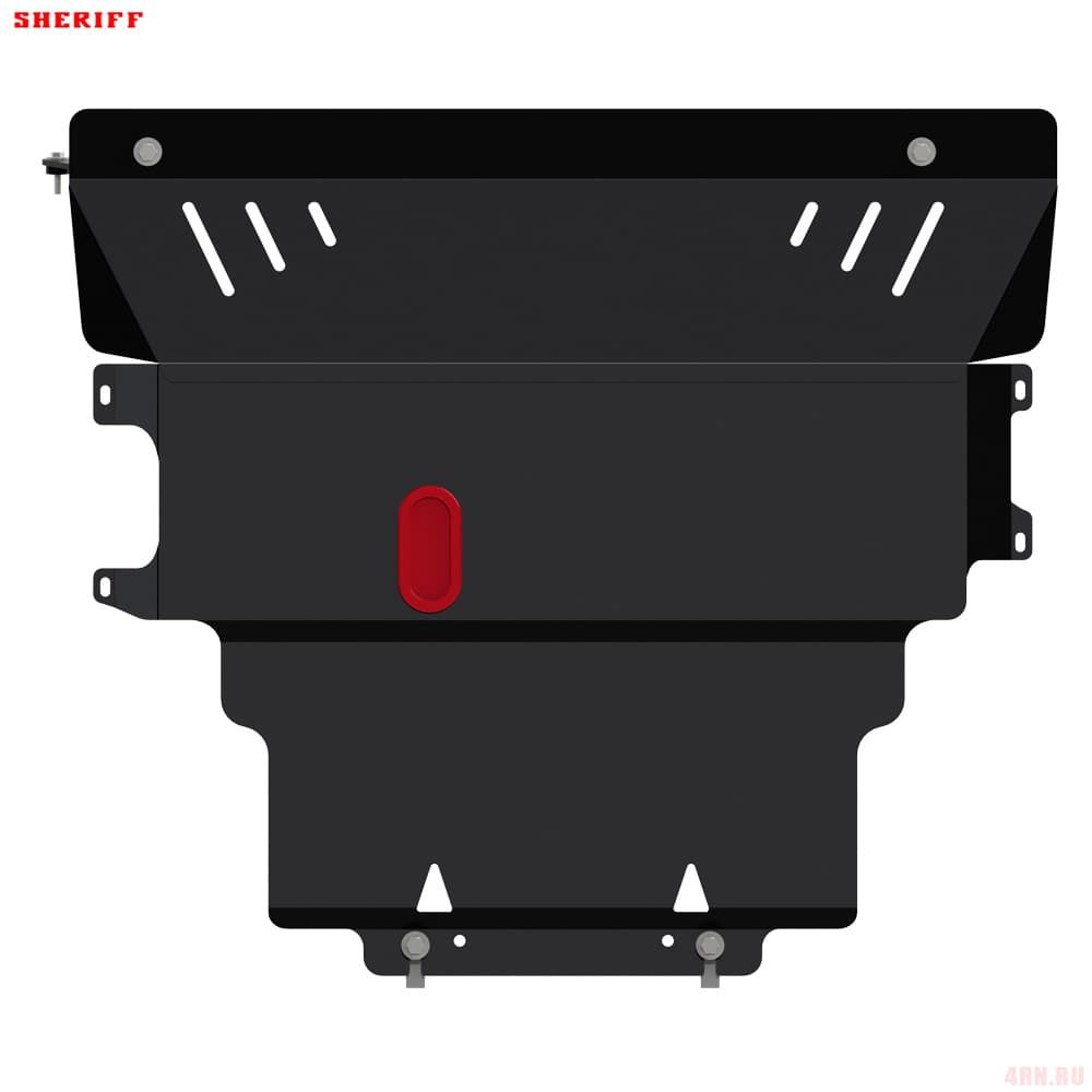 Защита картера Sheriff нужна для сохранности узлов и агрегатов, находящихся на днище авто. Она надежно защитит двигательный отсек вашей машины от повреждений. Также она защищает моторный отсек от влаги, грязи, и предусматривает наличие металлических крыльев, которые выполняют функцию пыльника.