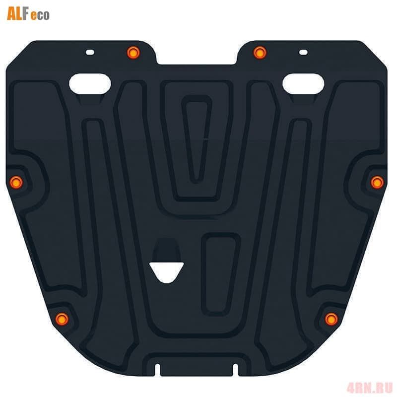 Защита для двигателя и кпп от производителя ALFeco, состоит из 1 листа и крепежа, материал - сталь толщиной 2.0 мм, подходит для автомобилей с двигателем объемом - все, привод - все, кпп - все. Отверстие для слива масла и смены фильтра - нет.