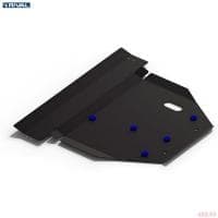 Порошковое окрашивание гарантирует долгий срок службы. А глубокий штамп увеличивает жесткость до 2,5 раз. Также имеется утопленный крепеж для предотвращения срывов. Качественная покраска защиты картера выдерживает 720 часов соляного тумана. Толщина изделия составляет 2-6 мм. Подштамповка в местах крепления предохраняет крепеж от срезания. Деталь спроектирована индивидуально для вашего автомобиля, что позволяет устанавливать ее в штатные места без доработки кузова за 10 мин.