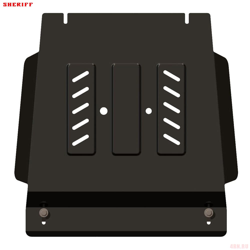 Защита картера Sheriff нужна для сохранности узлов и агрегатов, находящихся на днище авто. Она надежно защитит двигательный отсек вашей машины от повреждений. Также она защищает моторный отсек от влаги, грязи, и предусматривает наличие металлических крыльев, которые выполняют функцию пыльника.