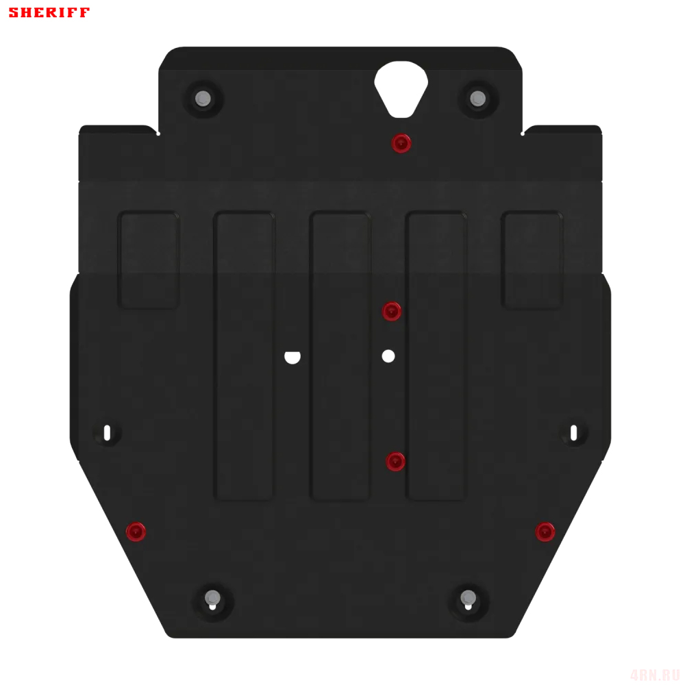 Защита картера Sheriff нужна для сохранности узлов и агрегатов, находящихся на днище авто. Она надежно защитит двигательный отсек вашей машины от повреждений. Также она защищает моторный отсек от влаги, грязи, и предусматривает наличие металлических крыльев, которые выполняют функцию пыльника.