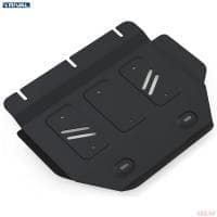 Порошковое окрашивание гарантирует долгий срок службы. А глубокий штамп увеличивает жесткость до 2,5 раз. Также имеется утопленный крепеж для предотвращения срывов. Качественная покраска защиты картера выдерживает 720 часов соляного тумана. Толщина изделия составляет 2-6 мм. Подштамповка в местах крепления предохраняет крепеж от срезания. Деталь спроектирована индивидуально для вашего автомобиля, что позволяет устанавливать ее в штатные места без доработки кузова за 10 мин.