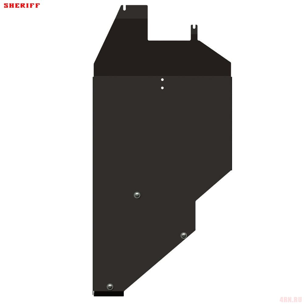 Защита картера Sheriff нужна для сохранности узлов и агрегатов, находящихся на днище авто. Она надежно защитит двигательный отсек вашей машины от повреждений. Также она защищает моторный отсек от влаги, грязи, и предусматривает наличие металлических крыльев, которые выполняют функцию пыльника.