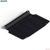 Порошковое окрашивание гарантирует долгий срок службы. А глубокий штамп увеличивает жесткость до 2,5 раз. Также имеется утопленный крепеж для предотвращения срывов. Качественная покраска защиты картера выдерживает 720 часов соляного тумана. Толщина изделия составляет 2-6 мм. Подштамповка в местах крепления предохраняет крепеж от срезания. Деталь спроектирована индивидуально для вашего автомобиля, что позволяет устанавливать ее в штатные места без доработки кузова за 10 мин.