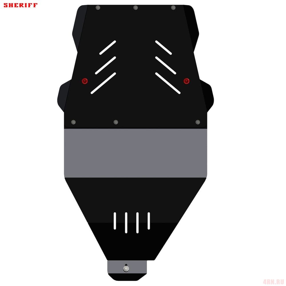 Защита картера Sheriff нужна для сохранности узлов и агрегатов, находящихся на днище авто. Она надежно защитит двигательный отсек вашей машины от повреждений. Также она защищает моторный отсек от влаги, грязи, и предусматривает наличие металлических крыльев, которые выполняют функцию пыльника.