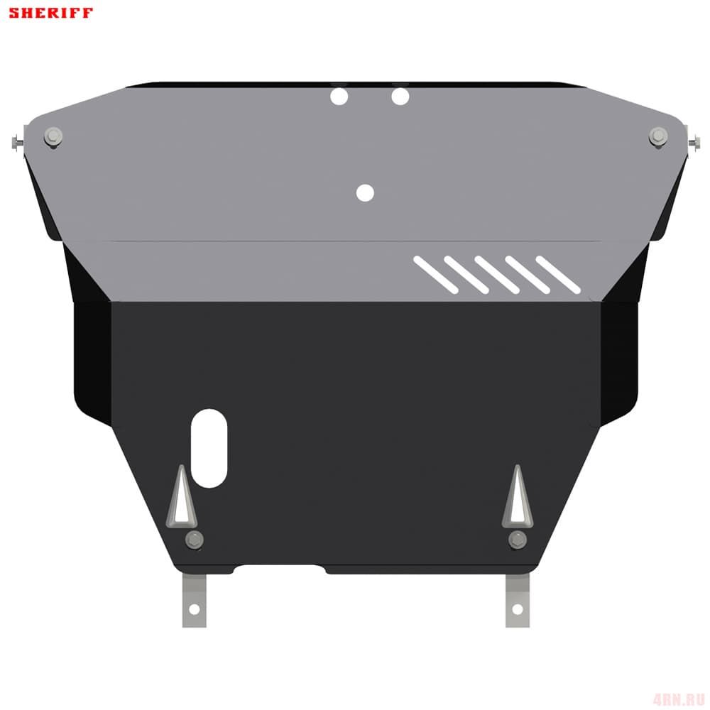 Защита картера Sheriff нужна для сохранности узлов и агрегатов, находящихся на днище авто. Она надежно защитит двигательный отсек вашей машины от повреждений. Также она защищает моторный отсек от влаги, грязи, и предусматривает наличие металлических крыльев, которые выполняют функцию пыльника.