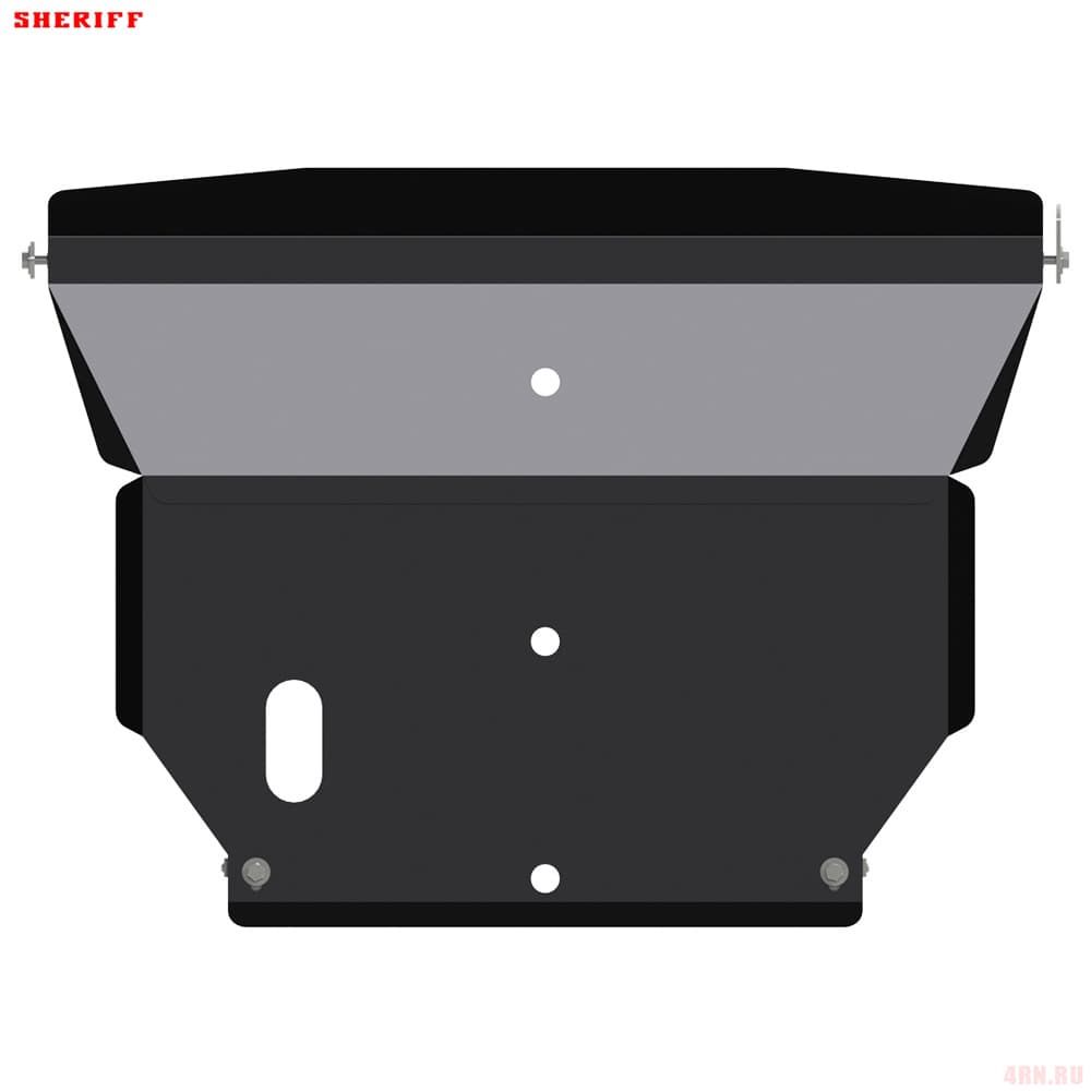 Защита картера Sheriff нужна для сохранности узлов и агрегатов, находящихся на днище авто. Она надежно защитит двигательный отсек вашей машины от повреждений. Также она защищает моторный отсек от влаги, грязи, и предусматривает наличие металлических крыльев, которые выполняют функцию пыльника.