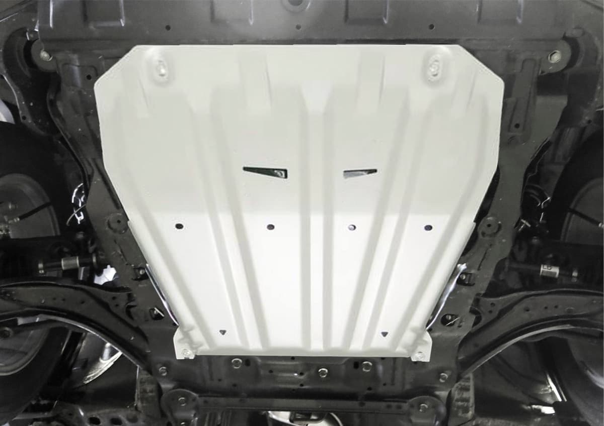 Стойкое порошковое окрашивание позволяет сохранить внешний вид, защитит от царапин, предотвратит коррозию. Также имеется утопленный крепеж для предотвращения срывов. Крепеж не образует с алюминием гальваническую пару. Защита спроектирована индивидуально для автомобиля, что позволяет устанавливать ее в штатные места без доработки кузова за 10 мин.