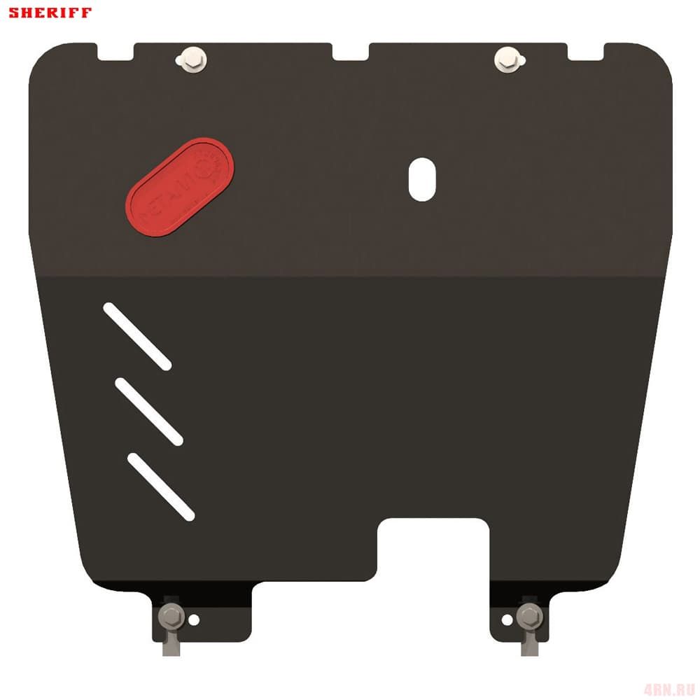 Защита картера Sheriff нужна для сохранности узлов и агрегатов, находящихся на днище авто. Она надежно защитит двигательный отсек вашей машины от повреждений. Также она защищает моторный отсек от влаги, грязи, и предусматривает наличие металлических крыльев, которые выполняют функцию пыльника.