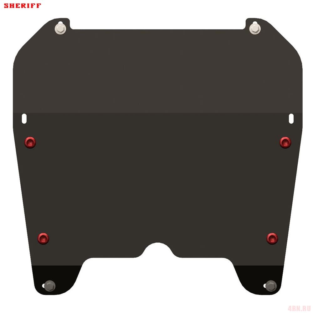 Защита картера Sheriff нужна для сохранности узлов и агрегатов, находящихся на днище авто. Она надежно защитит двигательный отсек вашей машины от повреждений. Также она защищает моторный отсек от влаги, грязи, и предусматривает наличие металлических крыльев, которые выполняют функцию пыльника.