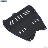 Порошковое окрашивание гарантирует долгий срок службы. А глубокий штамп увеличивает жесткость до 2,5 раз. Также имеется утопленный крепеж для предотвращения срывов. Качественная покраска защиты картера выдерживает 720 часов соляного тумана. Толщина изделия составляет 2-6 мм. Подштамповка в местах крепления предохраняет крепеж от срезания. Деталь спроектирована индивидуально для вашего автомобиля, что позволяет устанавливать ее в штатные места без доработки кузова за 10 мин.