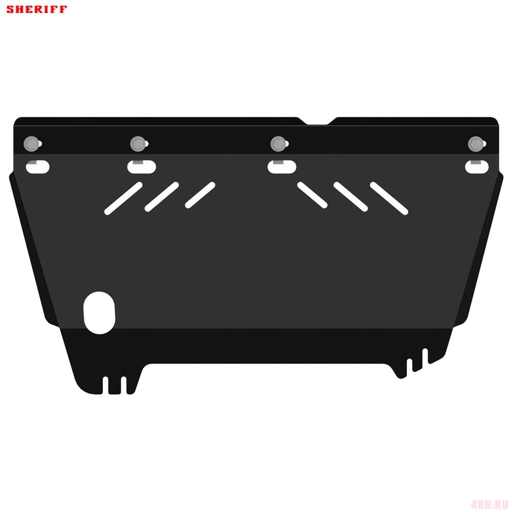 Защита картера Sheriff нужна для сохранности узлов и агрегатов, находящихся на днище авто. Она надежно защитит двигательный отсек вашей машины от повреждений. Также она защищает моторный отсек от влаги, грязи, и предусматривает наличие металлических крыльев, которые выполняют функцию пыльника.
