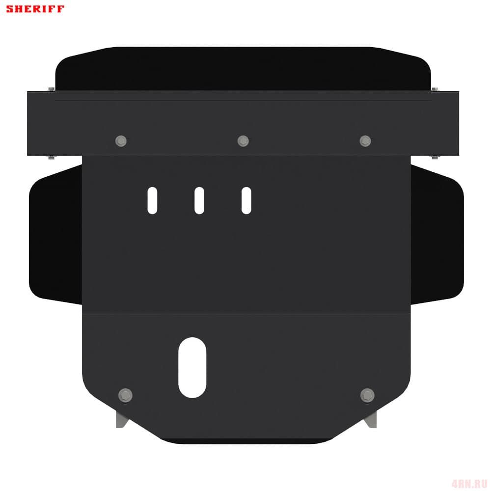 Защита картера Sheriff нужна для сохранности узлов и агрегатов, находящихся на днище авто. Она надежно защитит двигательный отсек вашей машины от повреждений. Также она защищает моторный отсек от влаги, грязи, и предусматривает наличие металлических крыльев, которые выполняют функцию пыльника.
