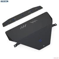 Порошковое окрашивание гарантирует долгий срок службы. А глубокий штамп увеличивает жесткость до 2,5 раз. Также имеется утопленный крепеж для предотвращения срывов. Качественная покраска защиты картера выдерживает 720 часов соляного тумана. Толщина изделия составляет 2-6 мм. Подштамповка в местах крепления предохраняет крепеж от срезания. Деталь спроектирована индивидуально для вашего автомобиля, что позволяет устанавливать ее в штатные места без доработки кузова за 10 мин.