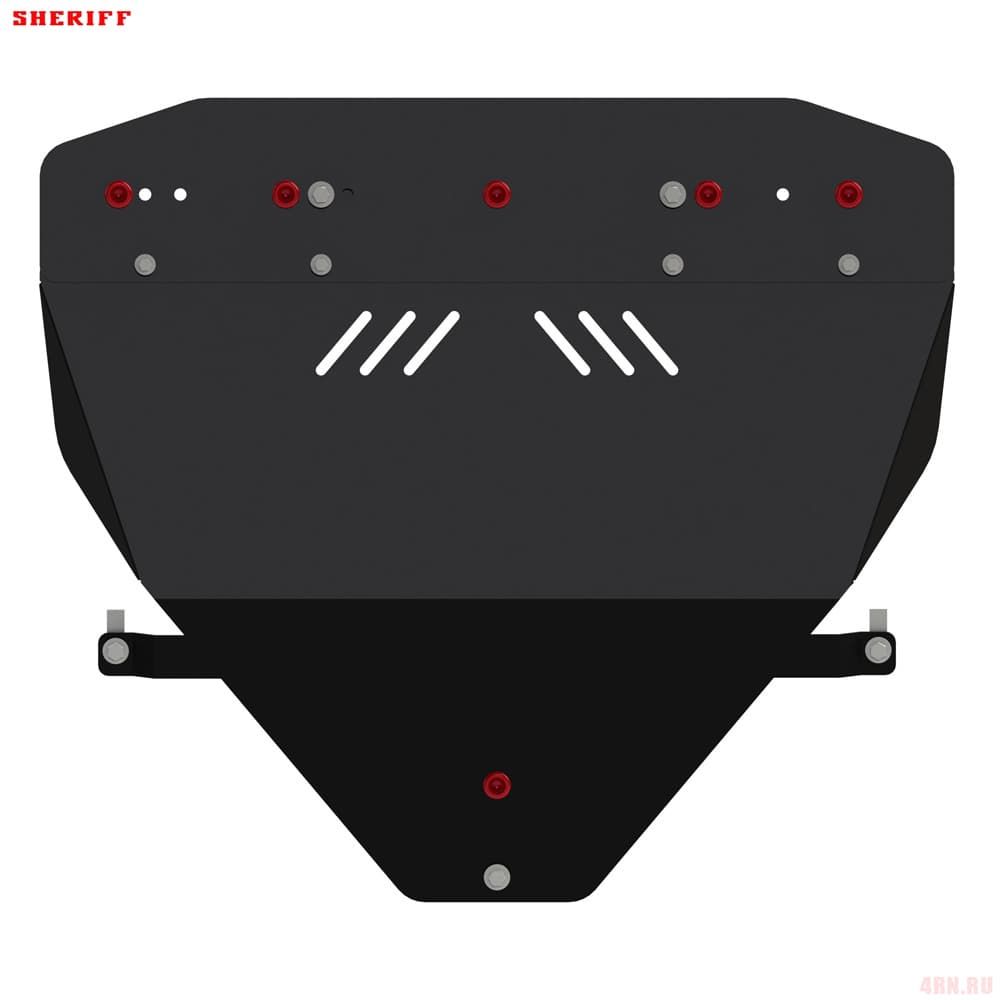 Защита картера Sheriff нужна для сохранности узлов и агрегатов, находящихся на днище авто. Она надежно защитит двигательный отсек вашей машины от повреждений. Также она защищает моторный отсек от влаги, грязи, и предусматривает наличие металлических крыльев, которые выполняют функцию пыльника.