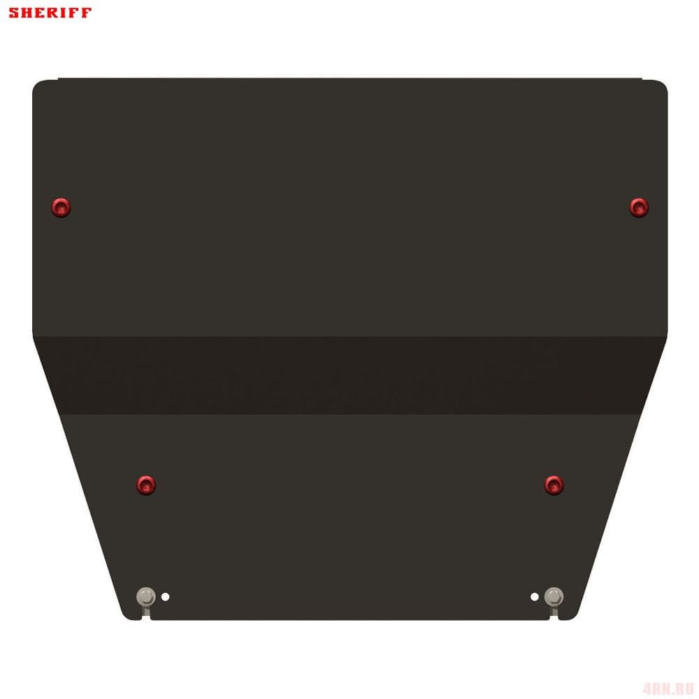 Защита картера Sheriff нужна для сохранности узлов и агрегатов, находящихся на днище авто. Она надежно защитит двигательный отсек вашей машины от повреждений. Также она защищает моторный отсек от влаги, грязи, и предусматривает наличие металлических крыльев, которые выполняют функцию пыльника.