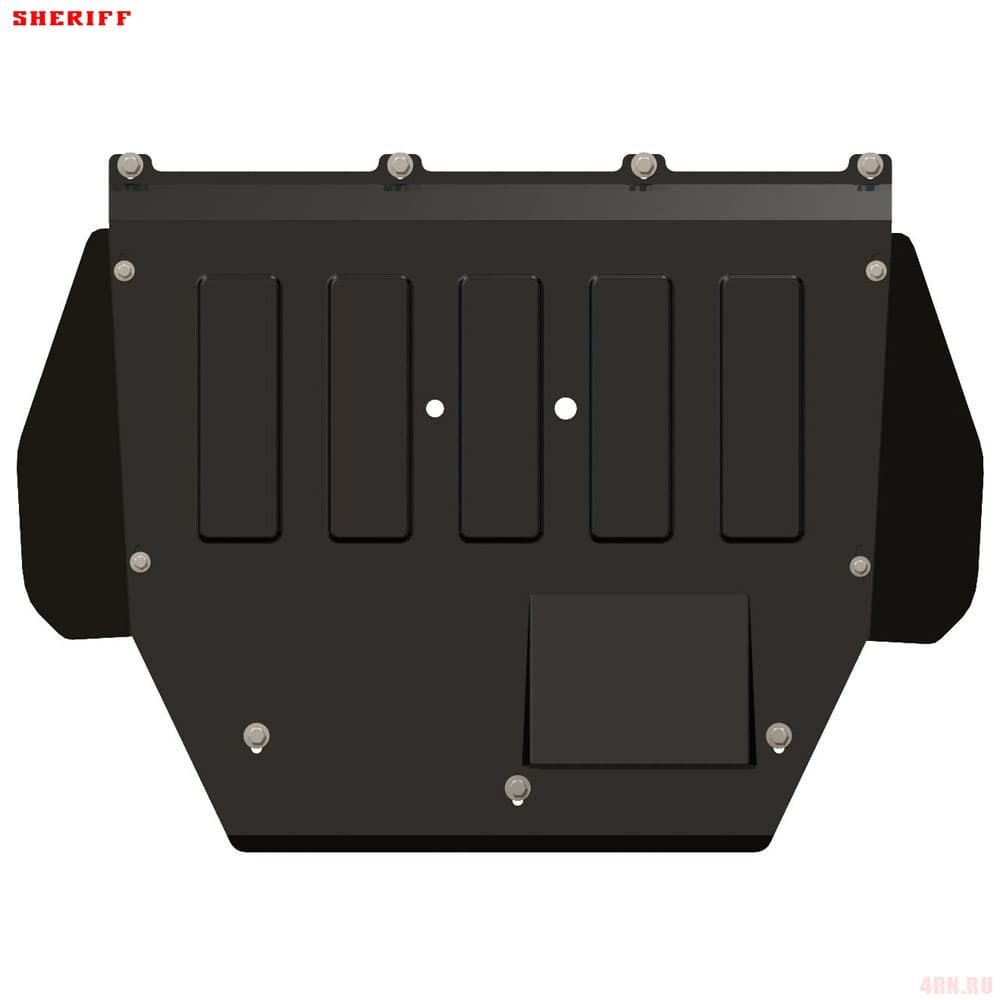 Защита картера Sheriff нужна для сохранности узлов и агрегатов, находящихся на днище авто. Она надежно защитит двигательный отсек вашей машины от повреждений. Также она защищает моторный отсек от влаги, грязи, и предусматривает наличие металлических крыльев, которые выполняют функцию пыльника.
