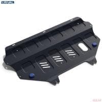 Порошковое окрашивание гарантирует долгий срок службы. А глубокий штамп увеличивает жесткость до 2,5 раз. Также имеется утопленный крепеж для предотвращения срывов. Качественная покраска защиты картера выдерживает 720 часов соляного тумана. Толщина изделия составляет 2-6 мм. Подштамповка в местах крепления предохраняет крепеж от срезания. Деталь спроектирована индивидуально для вашего автомобиля, что позволяет устанавливать ее в штатные места без доработки кузова за 10 мин.