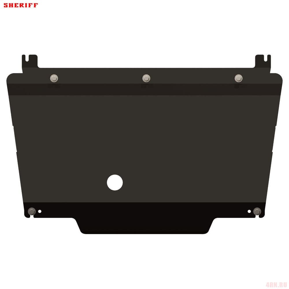 Защита картера Sheriff нужна для сохранности узлов и агрегатов, находящихся на днище авто. Она надежно защитит двигательный отсек вашей машины от повреждений. Также она защищает моторный отсек от влаги, грязи, и предусматривает наличие металлических крыльев, которые выполняют функцию пыльника.