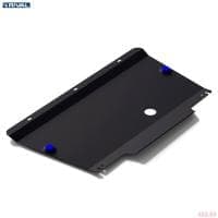 Порошковое окрашивание гарантирует долгий срок службы. А глубокий штамп увеличивает жесткость до 2,5 раз. Также имеется утопленный крепеж для предотвращения срывов. Качественная покраска защиты картера выдерживает 720 часов соляного тумана. Толщина изделия составляет 2-6 мм. Подштамповка в местах крепления предохраняет крепеж от срезания. Деталь спроектирована индивидуально для вашего автомобиля, что позволяет устанавливать ее в штатные места без доработки кузова за 10 мин.