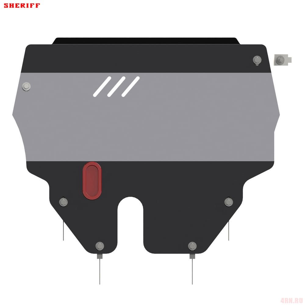 Защита картера Sheriff нужна для сохранности узлов и агрегатов, находящихся на днище авто. Она надежно защитит двигательный отсек вашей машины от повреждений. Также она защищает моторный отсек от влаги, грязи, и предусматривает наличие металлических крыльев, которые выполняют функцию пыльника.