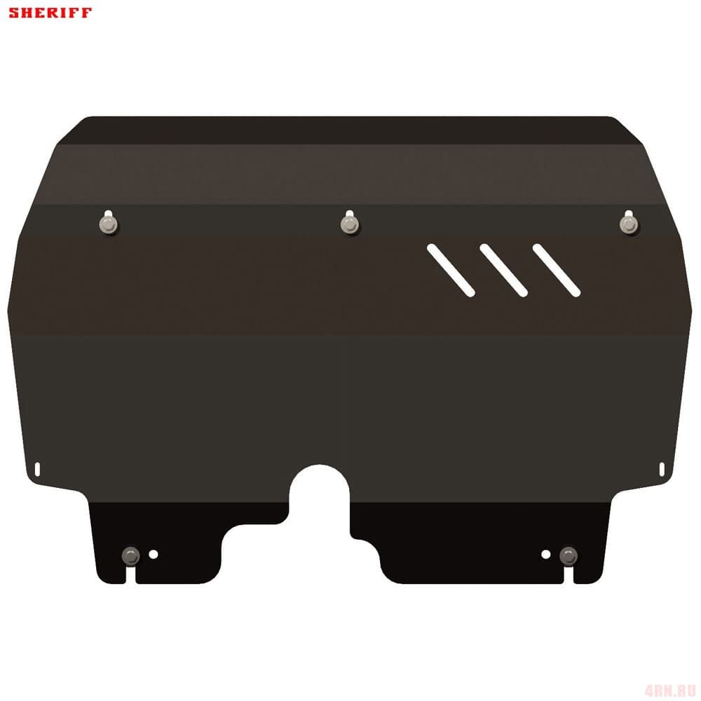 Защита картера Sheriff нужна для сохранности узлов и агрегатов, находящихся на днище авто. Она надежно защитит двигательный отсек вашей машины от повреждений. Также она защищает моторный отсек от влаги, грязи, и предусматривает наличие металлических крыльев, которые выполняют функцию пыльника.