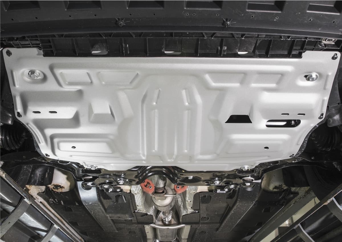 Стойкое порошковое окрашивание позволяет сохранить внешний вид, защитит от царапин, предотвратит коррозию. Также имеется утопленный крепеж для предотвращения срывов. Крепеж не образует с алюминием гальваническую пару. Защита спроектирована индивидуально для автомобиля, что позволяет устанавливать ее в штатные места без доработки кузова за 10 мин.