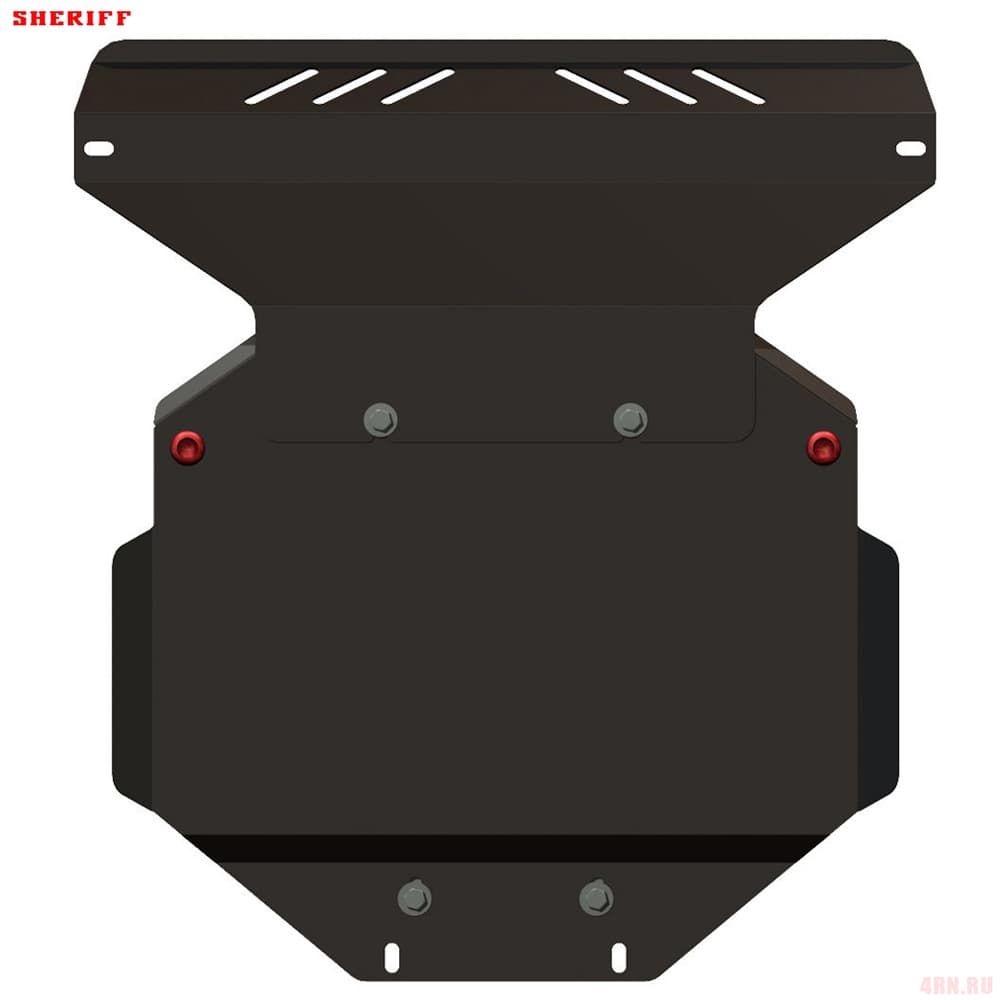Защита картера Sheriff нужна для сохранности узлов и агрегатов, находящихся на днище авто. Она надежно защитит двигательный отсек вашей машины от повреждений. Также она защищает моторный отсек от влаги, грязи, и предусматривает наличие металлических крыльев, которые выполняют функцию пыльника.