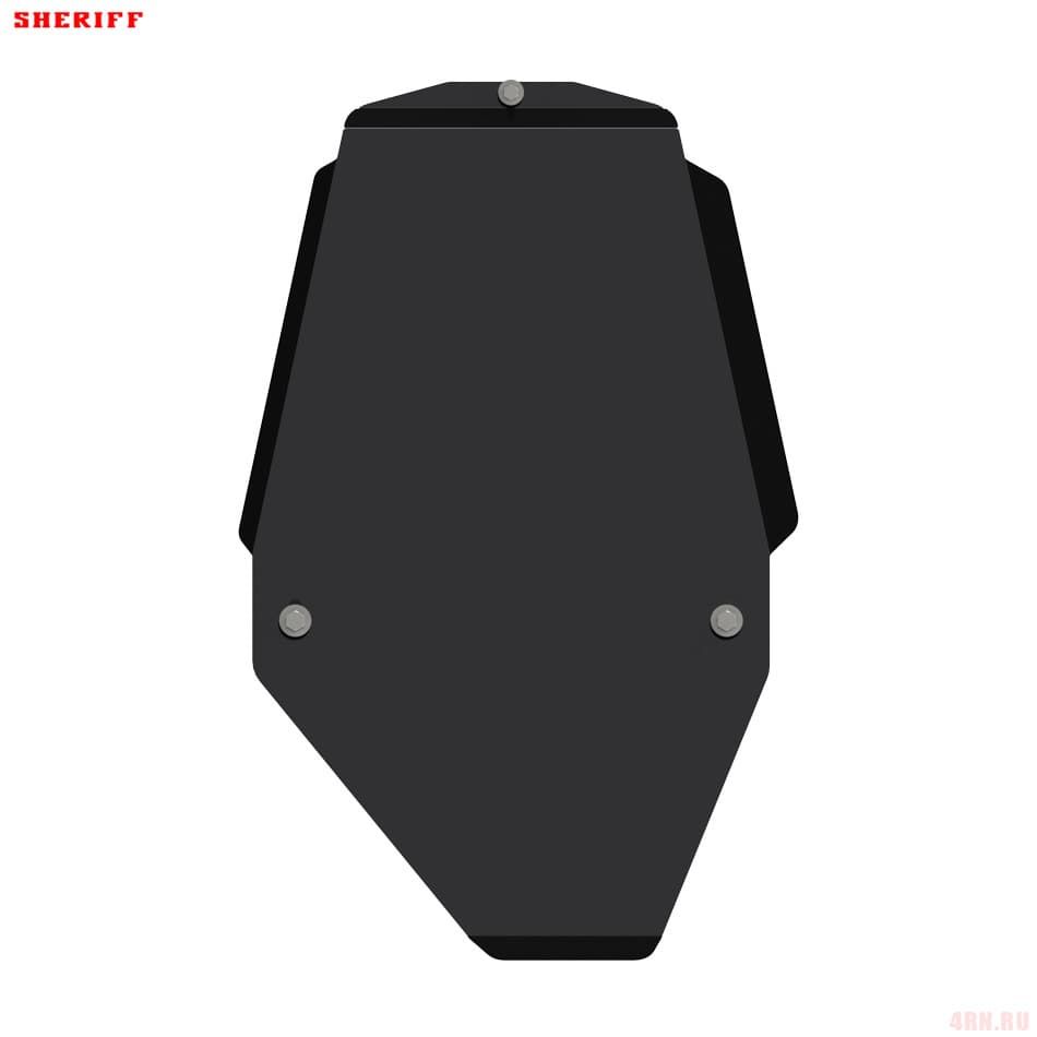 Защита картера Sheriff нужна для сохранности узлов и агрегатов, находящихся на днище авто. Она надежно защитит двигательный отсек вашей машины от повреждений. Также она защищает моторный отсек от влаги, грязи, и предусматривает наличие металлических крыльев, которые выполняют функцию пыльника.
