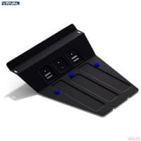 Порошковое окрашивание гарантирует долгий срок службы. А глубокий штамп увеличивает жесткость до 2,5 раз. Также имеется утопленный крепеж для предотвращения срывов. Качественная покраска защиты картера выдерживает 720 часов соляного тумана. Толщина изделия составляет 2-6 мм. Подштамповка в местах крепления предохраняет крепеж от срезания. Деталь спроектирована индивидуально для вашего автомобиля, что позволяет устанавливать ее в штатные места без доработки кузова за 10 мин.