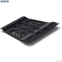 Порошковое окрашивание гарантирует долгий срок службы. А глубокий штамп увеличивает жесткость до 2,5 раз. Также имеется утопленный крепеж для предотвращения срывов. Качественная покраска защиты картера выдерживает 720 часов соляного тумана. Толщина изделия составляет 2-6 мм. Подштамповка в местах крепления предохраняет крепеж от срезания. Деталь спроектирована индивидуально для вашего автомобиля, что позволяет устанавливать ее в штатные места без доработки кузова за 10 мин.