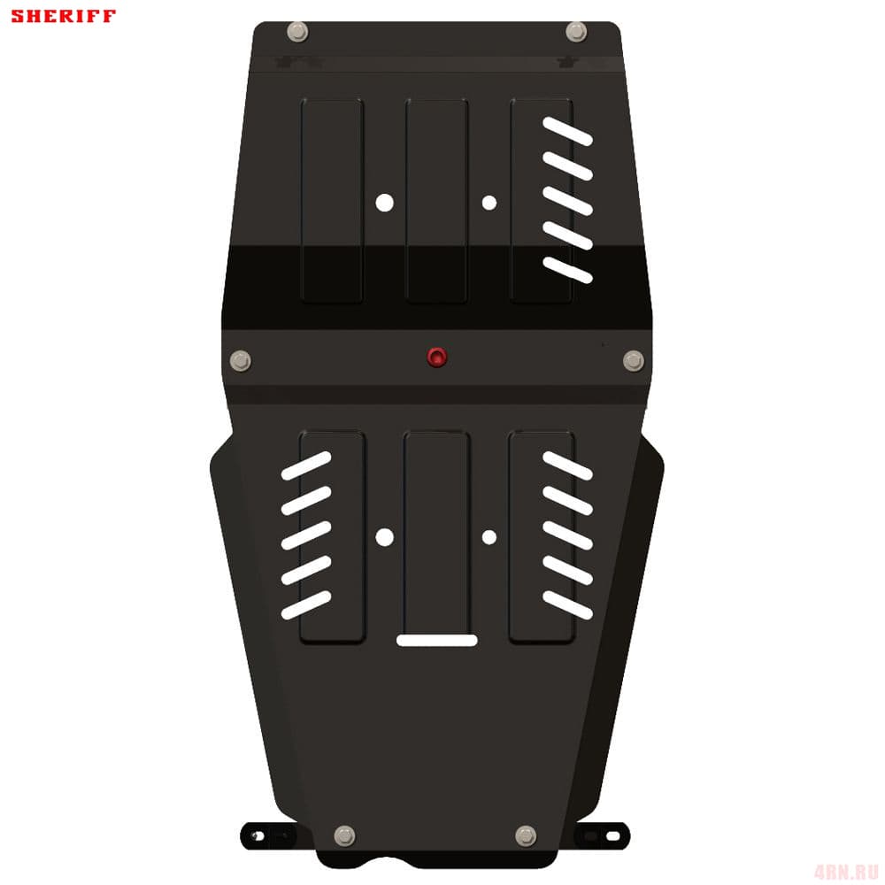Защита картера Sheriff нужна для сохранности узлов и агрегатов, находящихся на днище авто. Она надежно защитит двигательный отсек вашей машины от повреждений. Также она защищает моторный отсек от влаги, грязи, и предусматривает наличие металлических крыльев, которые выполняют функцию пыльника.