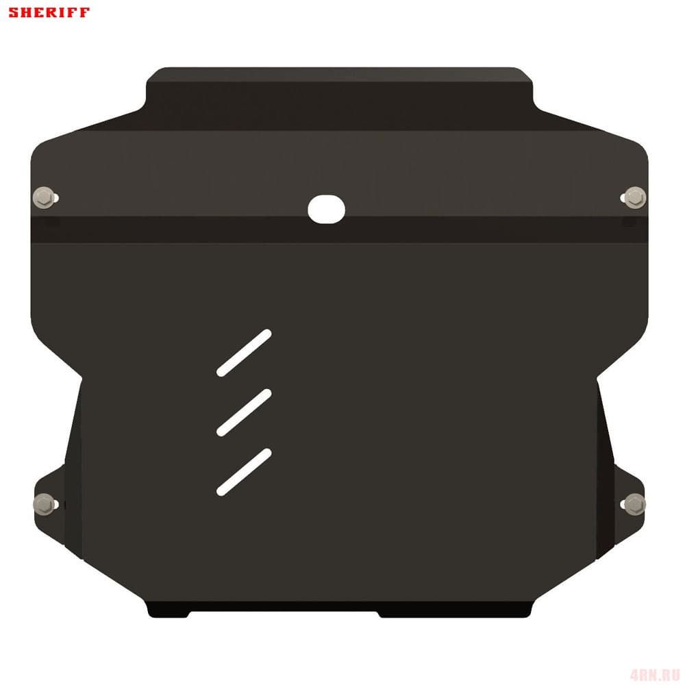 Защита картера Sheriff нужна для сохранности узлов и агрегатов, находящихся на днище авто. Она надежно защитит двигательный отсек вашей машины от повреждений. Также она защищает моторный отсек от влаги, грязи, и предусматривает наличие металлических крыльев, которые выполняют функцию пыльника.
