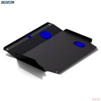 Порошковое окрашивание гарантирует долгий срок службы. А глубокий штамп увеличивает жесткость до 2,5 раз. Также имеется утопленный крепеж для предотвращения срывов. Качественная покраска защиты картера выдерживает 720 часов соляного тумана. Толщина изделия составляет 2-6 мм. Подштамповка в местах крепления предохраняет крепеж от срезания. Деталь спроектирована индивидуально для вашего автомобиля, что позволяет устанавливать ее в штатные места без доработки кузова за 10 мин.