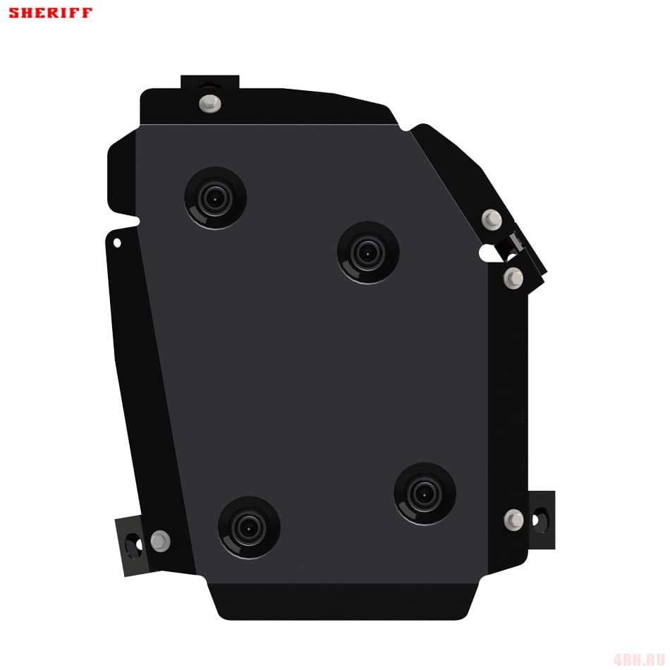Защита картера Sheriff нужна для сохранности узлов и агрегатов, находящихся на днище авто. Она надежно защитит двигательный отсек вашей машины от повреждений. Также она защищает моторный отсек от влаги, грязи, и предусматривает наличие металлических крыльев, которые выполняют функцию пыльника.