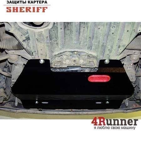 Защита картера Sheriff нужна для сохранности узлов и агрегатов, находящихся на днище авто. Она надежно защитит двигательный отсек вашей машины от повреждений. Также она защищает моторный отсек от влаги, грязи, и предусматривает наличие металлических крыльев, которые выполняют функцию пыльника.