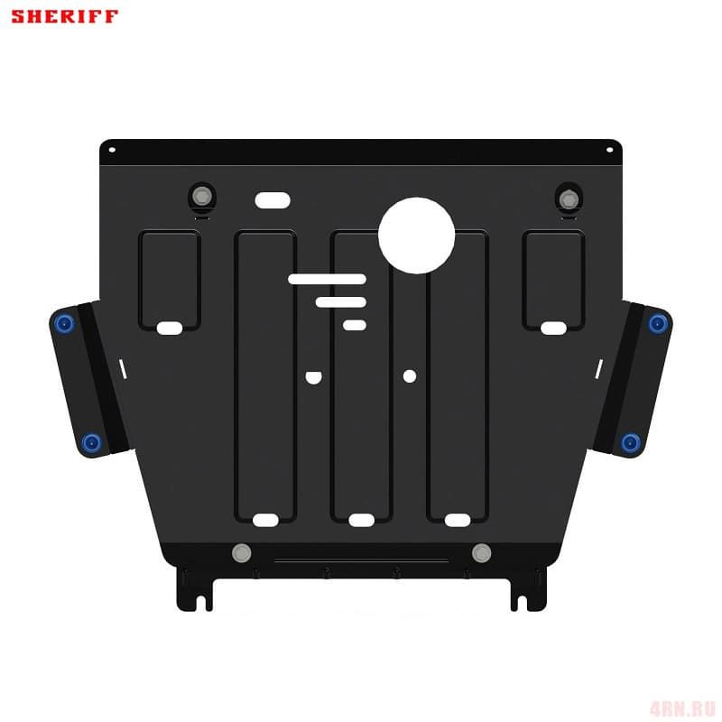 Защита картера Sheriff нужна для сохранности узлов и агрегатов, находящихся на днище авто. Она надежно защитит двигательный отсек вашей машины от повреждений. Также она защищает моторный отсек от влаги, грязи, и предусматривает наличие металлических крыльев, которые выполняют функцию пыльника.
