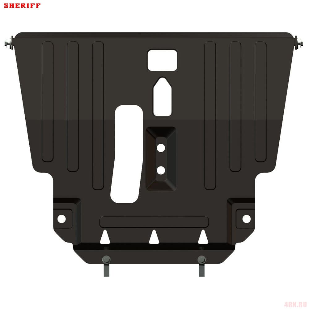 Защита картера Sheriff нужна для сохранности узлов и агрегатов, находящихся на днище авто. Она надежно защитит двигательный отсек вашей машины от повреждений. Также она защищает моторный отсек от влаги, грязи, и предусматривает наличие металлических крыльев, которые выполняют функцию пыльника.
