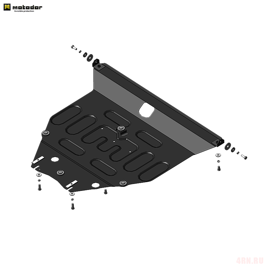 Защита двигателя и кпп артикул 72506 от российского производителя Мотодор. Разработана специально для автомобиля Toyota Corolla 2001-2007. Крепеж поставляется в комплекте. Стали толщиной 2,0 мм достаточно для городских и загородных условий дорог.