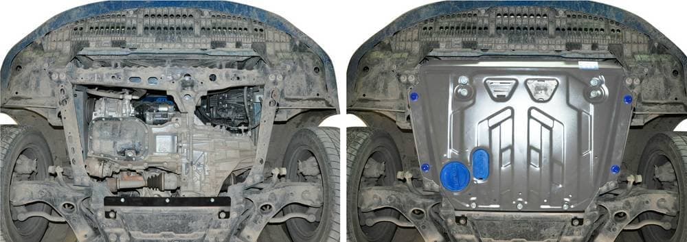 Стойкое порошковое окрашивание позволяет сохранить внешний вид, защитит от царапин, предотвратит коррозию. Также имеется утопленный крепеж для предотвращения срывов. Крепеж не образует с алюминием гальваническую пару. Защита спроектирована индивидуально для автомобиля, что позволяет устанавливать ее в штатные места без доработки кузова за 10 мин.